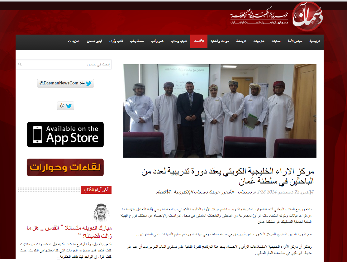أكمل القراءة »مركز الآراء الخليجية الكويتي يعقد دورة تدريبية لعدد من الباحثين في سلطنة عُمان