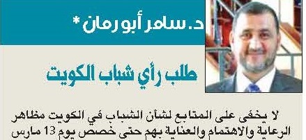 كتب الدكتور سامر أبو رمان مدير المركز مقالاً بعنوان طلب رأي شباب الكويت في صحيفة الجريدة الكويتية . رابط المقال
