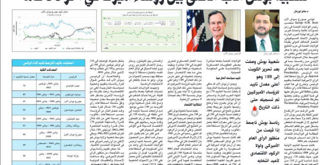 تولى جورج بوش الأب George H.W. Bush منصب رئيس الولايات المتحدة في زمن تحولات عالمية وأحداث كبرى، كان أبرزها نهاية الحرب الباردة وانهيار الاتحاد السوفييتي، انتصار التحالف الدولي بقيادة الولايات المتحدة في حرب الخليج وتحرير الكويت، وهو ما جعل نسبة تأييده أعلى بكثير من المتوسط خلال السنوات الثلاث الأولى من رئاسته، بما في ذلك واحدة من أعلى درجات التأييد فيما يعرف بالثقة في أداء الرئيس «Presidential Approval» في تاريخ استطلاعات الرأي الأميركية الخاصة بتقييم الرئيس، وتندرج في هذا الباب نتائج استطلاعات رأي منظمة جالوب Gallup التي سنرتكز عليها في هذا التقرير ونقل بعضها بطريقة تفاعلية موقع «مشروع الرئاسة الأميركية» The American Presidency Project.